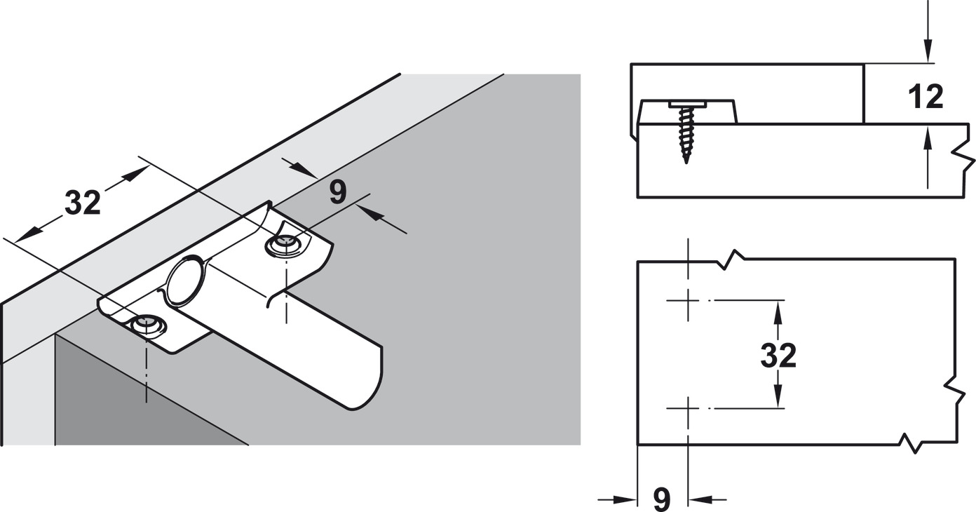 Esta placa adaptadora actúa como interfaz entre el amortiguador de puerta y el mueble, proporcionando una superficie de montaje estable y asegurando el correcto posicionamiento del amortiguador para un funcionamiento óptimo.