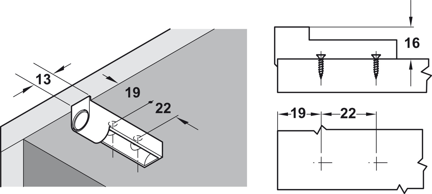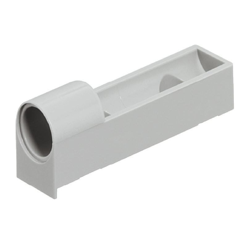 Placa adaptadora lineal gris para amortiguadores de puertas 10mm. Plástico con ayuda de posicionamiento integrada. Montaje atornillado. Base precisa para topes y amortiguadores en sistemas de puertas abatibles.
