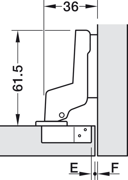 | Grosor de puerta mm | Distancia de la cazoleta E mm | ||||