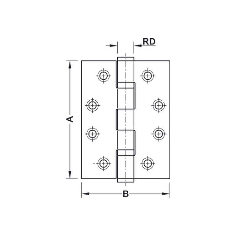 La bisagra perforada es una solución robusta para puertas interiores sin rebaje, diseñada para soportar cargas elevadas con alta confiabilidad.