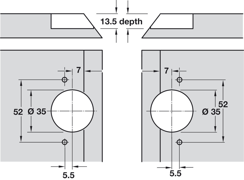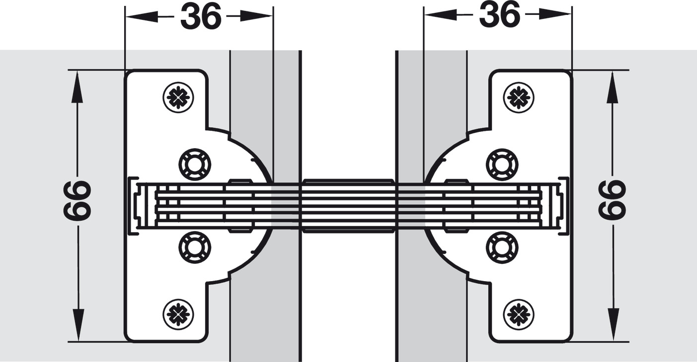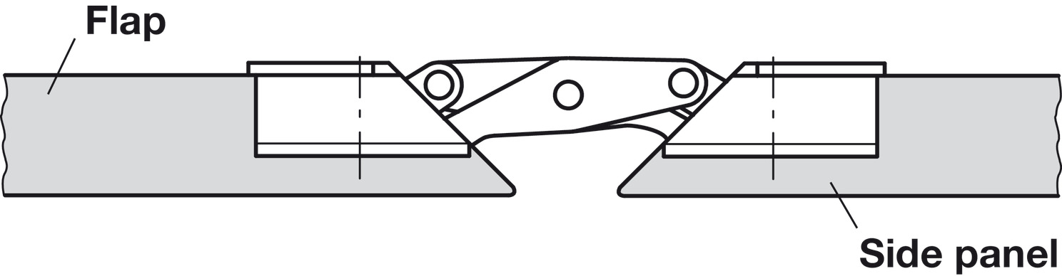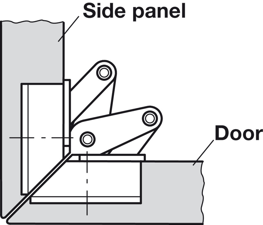 La única bisagra que se puede utilizar para construcciones de muebles con juntas a inglete en el cuerpo y la puerta del mueble.