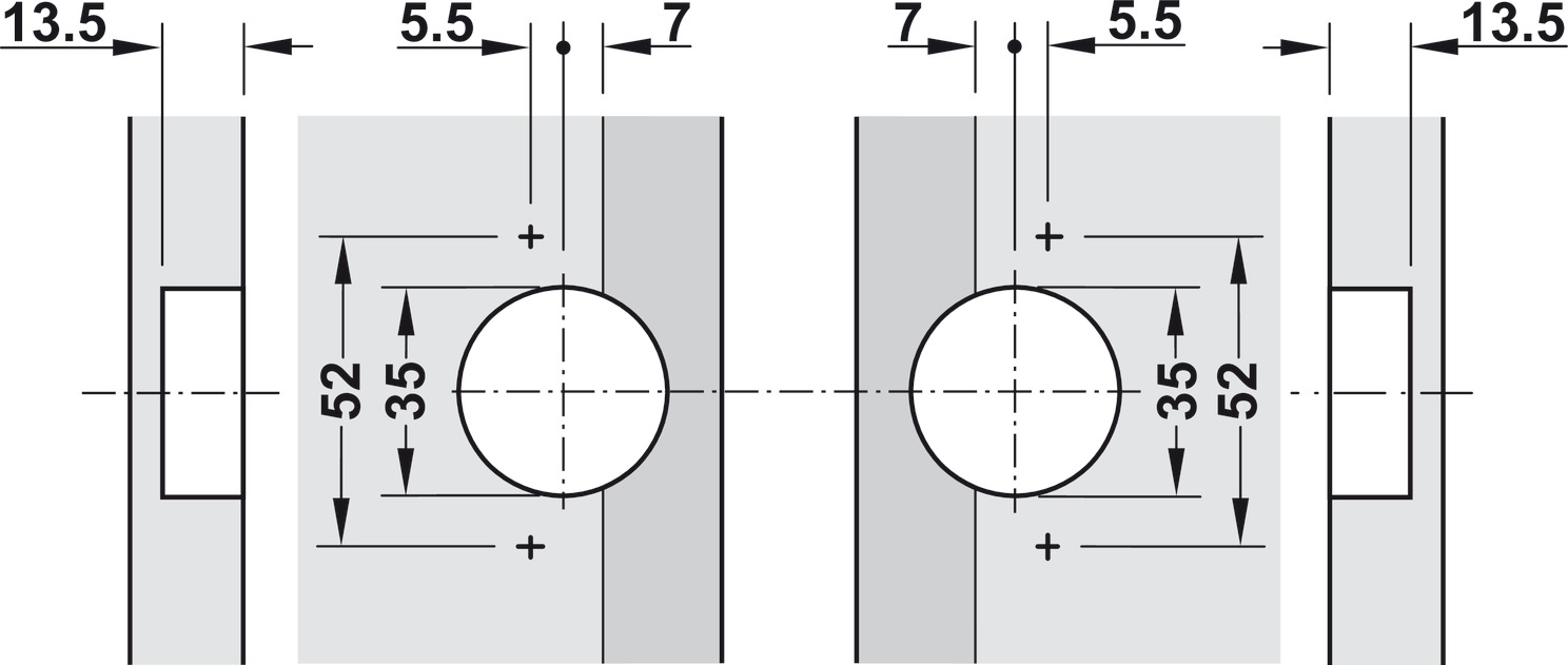 Bisagra especial para puertas abatibles a inglete GS 45° Häfele. Ángulo 95°, para madera 16-22mm. Regulación 3D: lateral±1,5mm, altura±3mm, profundidad±1,5mm. Única para inglete en cuerpo y puerta. Acabado niquelado.
