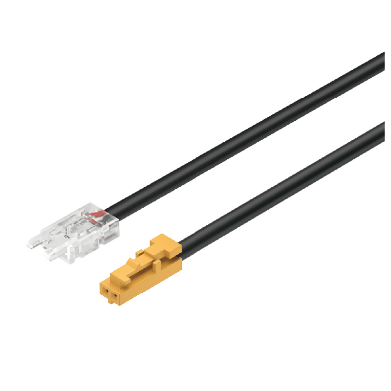 Cable Adaptador Häfele Loox5 12V – 2 Metros con Conector y Clip de 10 mm. Para conectar tiras LED monocromas a fuentes de alimentación Loox. 3,5 A. Compatible con corriente constante.