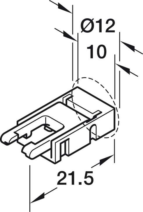 | Extremo 2 | Clip de conexión para tiras LED de 10 mm | Diámetro orificio: 12 mm |