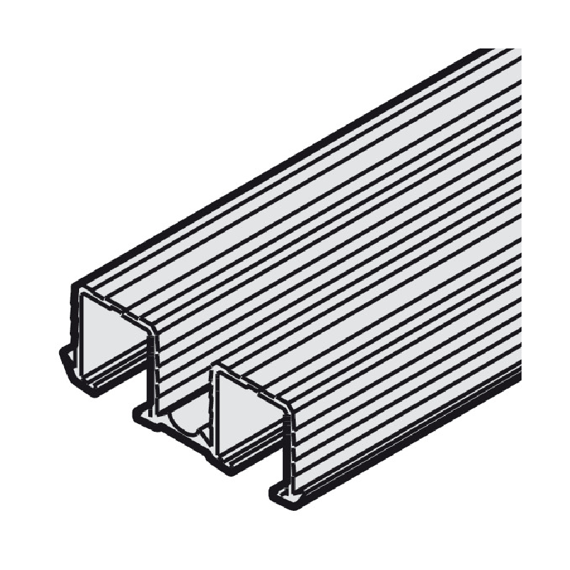 Carril Doble Superior Slido F-Line21 – Aluminio Natural Estriado – 2500 mm. Para puertas correderas de hasta 40 kg. Instalación versátil: presión en ranura, adhesivo o tornillos. Acabado estético con superficie estriada. Ideal para armarios y proyectos de gran formato.