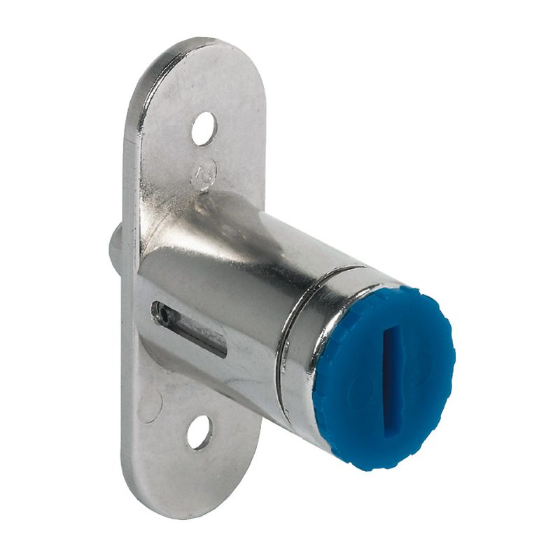 Cerradura cilindro pulsar Häfele Symo EC niquelada. Fundición zinc, para núcleo intercambiable, pasador M5 para sistemas centrales. Cierre 180°, longitud 27.5-38.5mm. Ideal cierre central institucional.