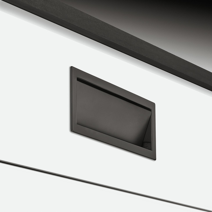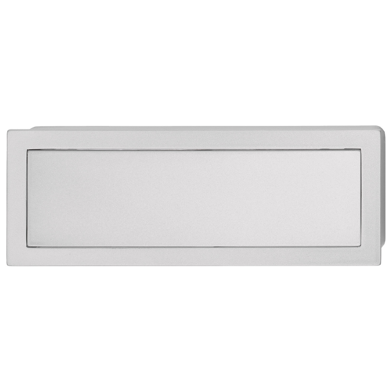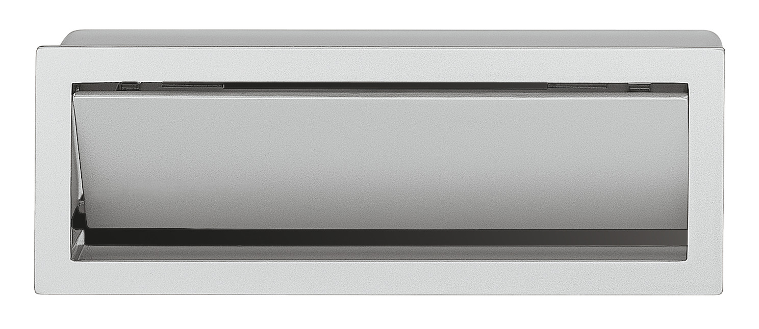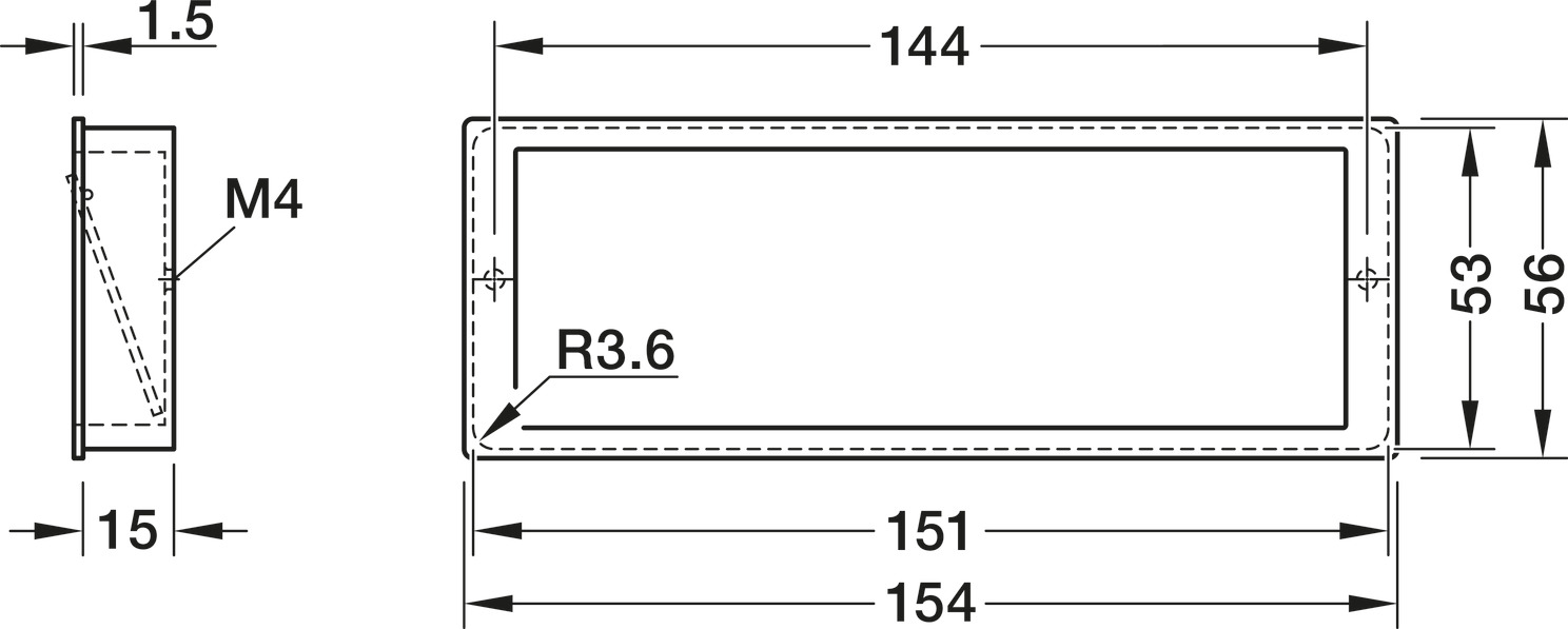 Tirador embutido rectangular 154x56mm color aluminio. Fundición zinc con hueco plástico. Para puertas abatibles, distancia taladros 144mm. Diseño integrado, superficie limpia, instalación embutida. Ideal cocinas, armarios modernos.