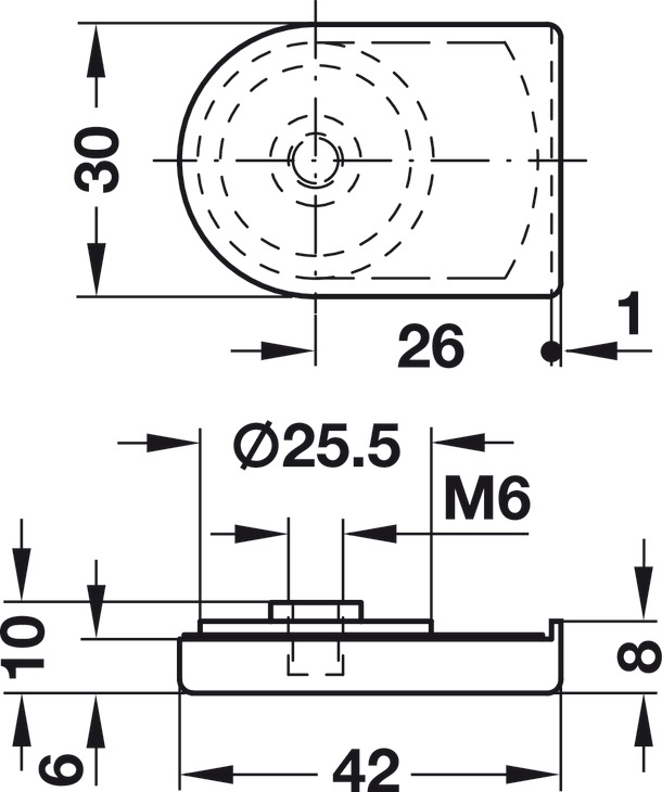 1 tornillo roscado M6 x 10 mm (para cristal hasta 8 mm)