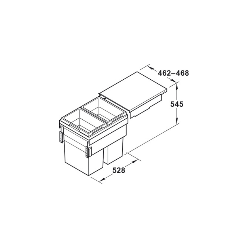 El Hailo Euro-Cargo es una solución premium para la gestión de residuos en cocina, diseñada para instalarse detrás de paneles frontales y maximizar la capacidad de almacenamiento. Con sus dos contenedores de 38 litros, permite una separación eficiente de residuos en espacios amplios.