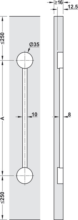 Grosor de puerta mínimo: ≥ 16 mm