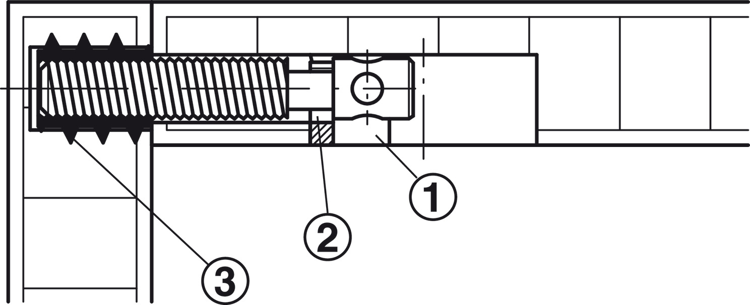 Atornillar: Introducir tornillo de agujeros ranurado en el manguito hasta que la placa de presión encaje justo debajo de la cabeza