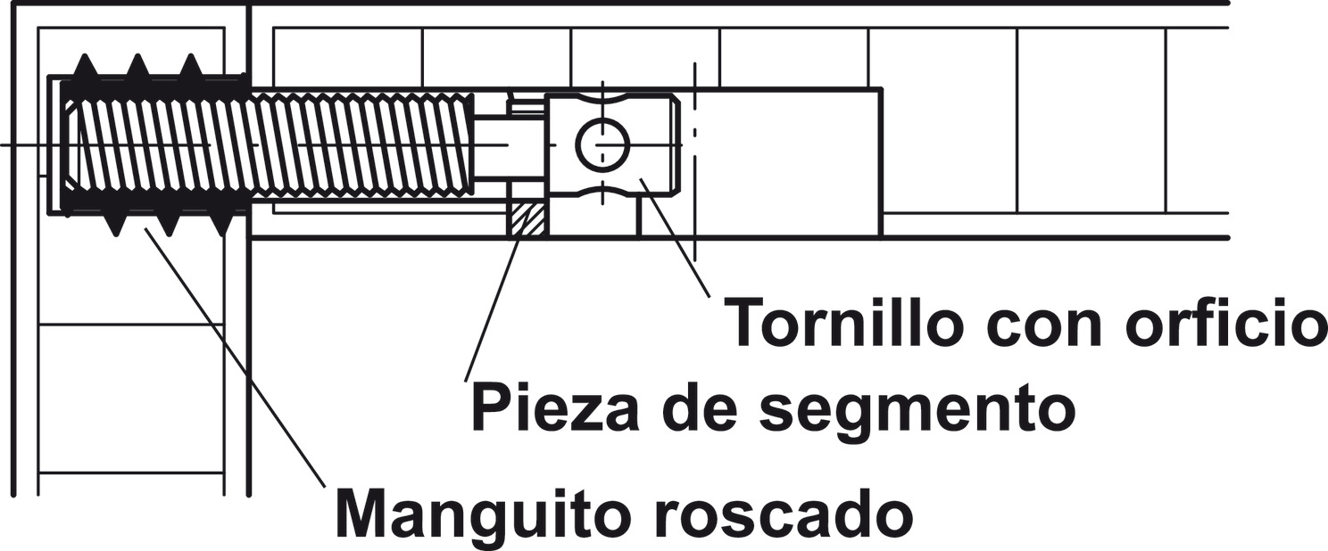 | Manguito roscado M8 | Se embute en taladro, base de la unión | Acero galvanizado |