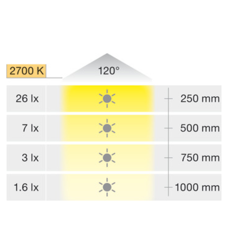 Luz blanco cálido (2.700 K) para un ambiente confortable.