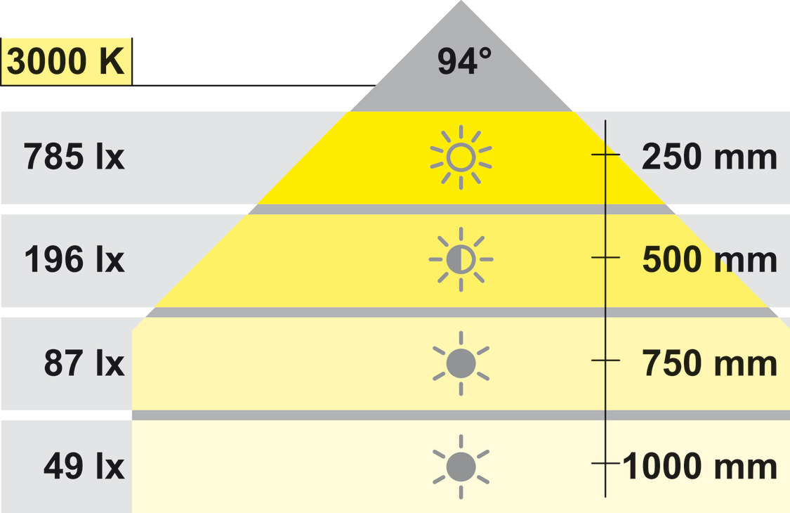 Ventaja clave: Su grado de protección IP65 desde abajo (von unten) garantiza que, una vez instalada, la lámpara resiste chorros de agua provenientes de la dirección inferior, protegiendo el módulo LED en aplicaciones críticas.