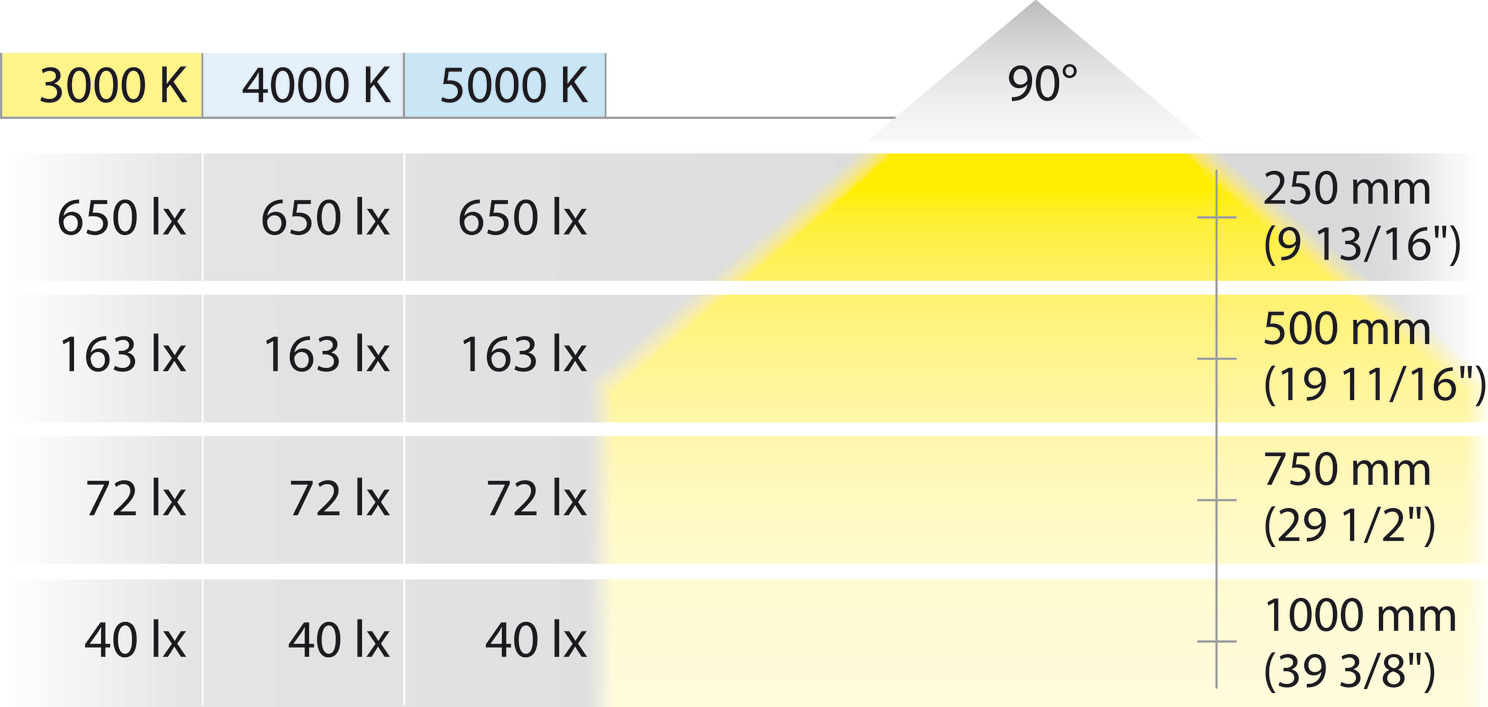 Luz focalizada: Ángulo de 90° para iluminación direccional precisa.