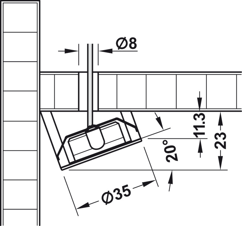 Montaje empotrado con perforación pasante (Durchgangsbohrung)