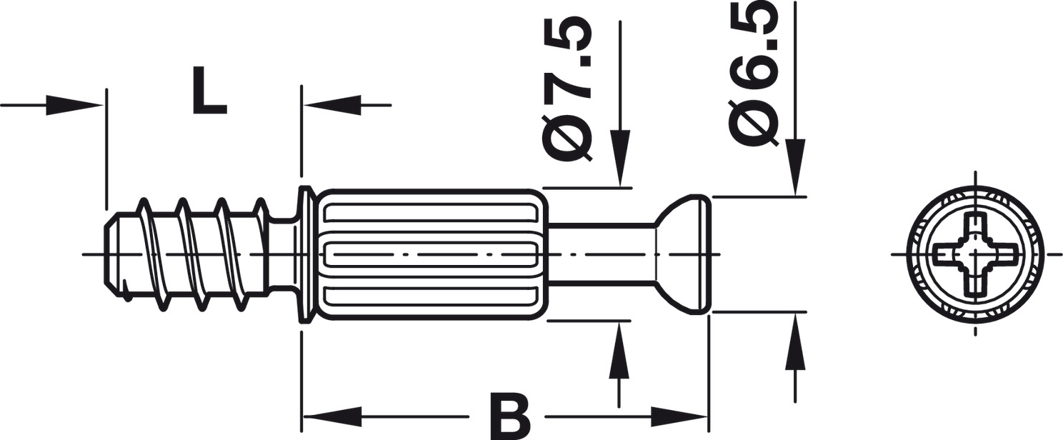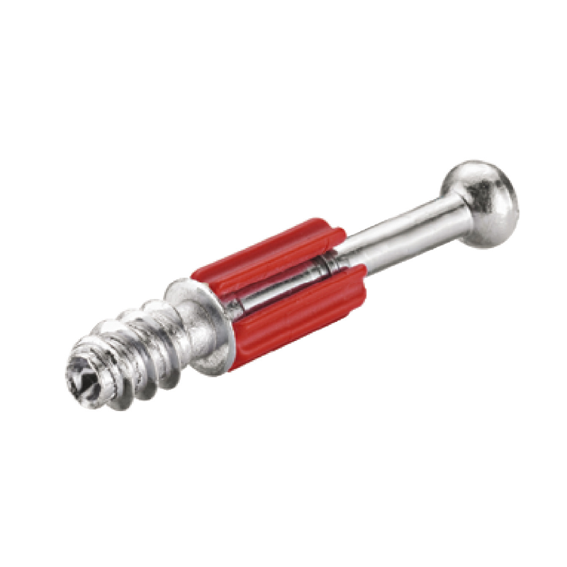 Perno unión Minifix® S200 rojo holgura reducida. Tecnología autorroscante, medida B34mm, rosca 11mm, cabeza 6,5mm. Taladro 5mm, accionamiento PZ2. Acero+plástico galvanizado. Mayor precisión en ensamblajes.