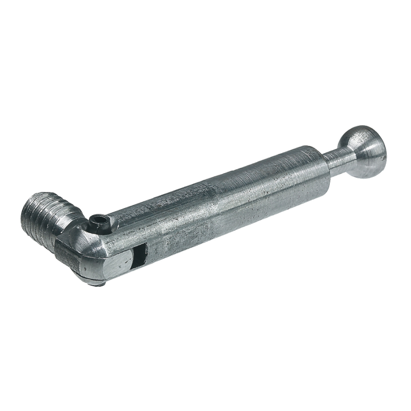 Perno unión Minifix® galvanizado M6 inglete B44mm. Acero con articulación, montaje unilateral, rosca M6 7,5mm. Ángulos 90°-180°, taladro 7mm. Ideal conexiones mixtas con rosca en un lado. Compatible cajas sin reborde.