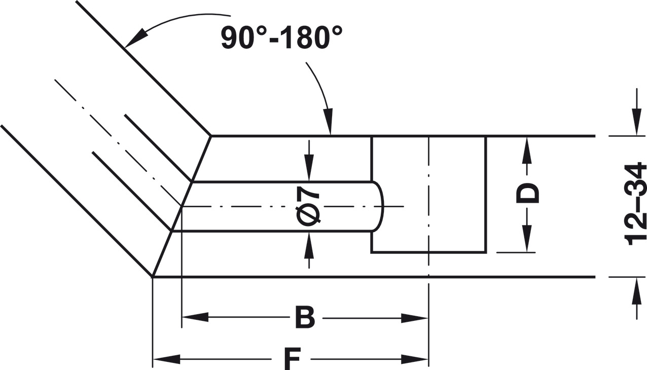Profundidad de taladro D: Según caja Minifix® utilizada en el otro lado