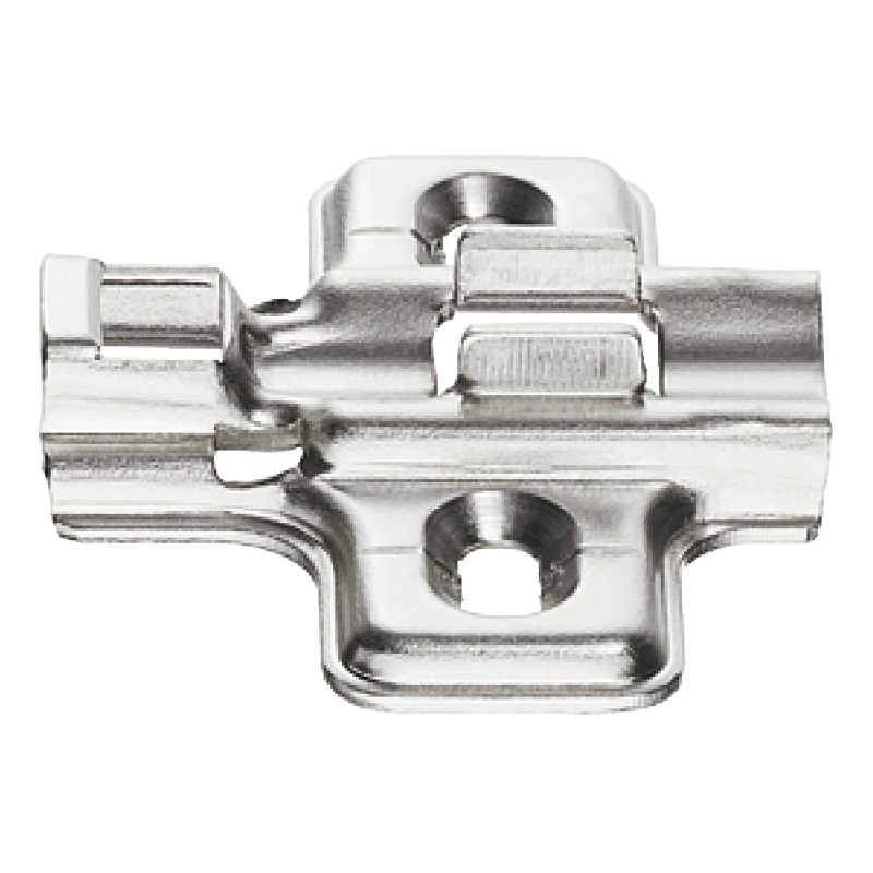 Placa cruz Metalla SM Kombi niquelada distancia D 0mm. Regulación altura ±2mm por agujero oblongo. Con tornillos europeos premontados. Técnica montaje rápido SM. Para bisagras Metalla 300. Máxima eficiencia instalación.