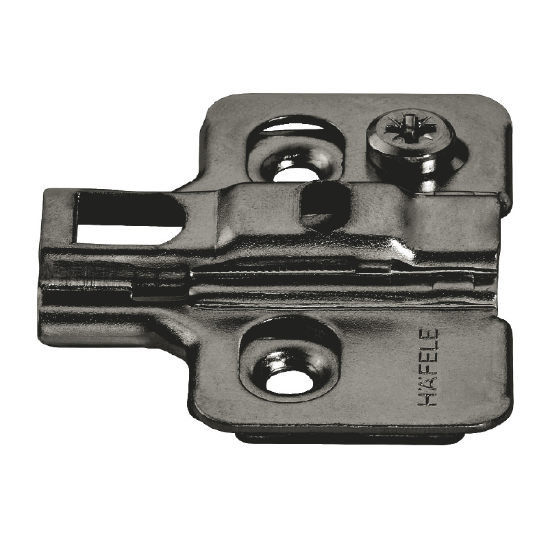 Placa montaje 310 negra grafito para bisagras Metalla 310 SM. Altura 0mm, regulación excéntrica ±2mm. Técnica montaje rápido SM. Distancia tornillos 32mm, borde 37mm. Acabado grafito integración estética.
