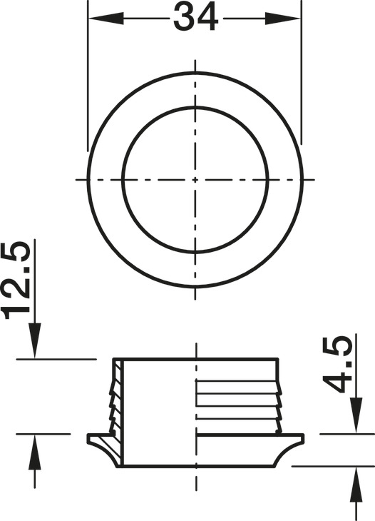 Roseta niquelada mate 34mm para sistemas Push-Lock. Plástico resistente, para tableros 16mm. Instalación a presión. Acabado profesional para cerraduras varilla giratoria y sobrepuestas. Compatible toda la serie Push-Lock.