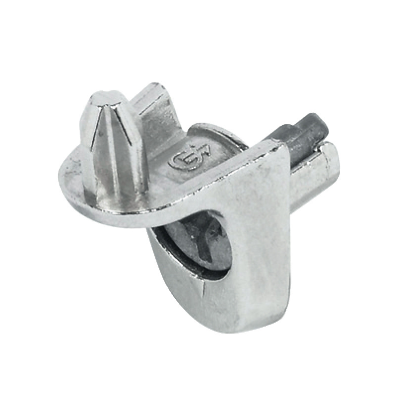 Soporte estante madera Ixconnect SH-W-5042 niquelado alta capacidad 50kg. Fundición zinc, taladro 5mm, ajuste rápido giro 180° sin dañar taladro. Capacidad 12,5kg/pieza (50kg 4 soportes). Certificado DIN EN 16337. Para aglomerado/MDF.