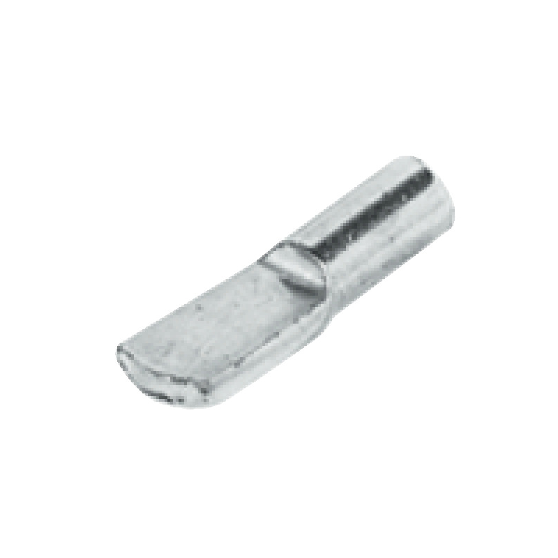 Soporte para entrepaño acero niquelado 4mm. Capacidad 60kg certificada DIN EN 1727. Longitud clavija 9mm, montaje embutido. Para estantes madera, acabado niquelado brillante. Ideal librerías, cocinas, armarios.