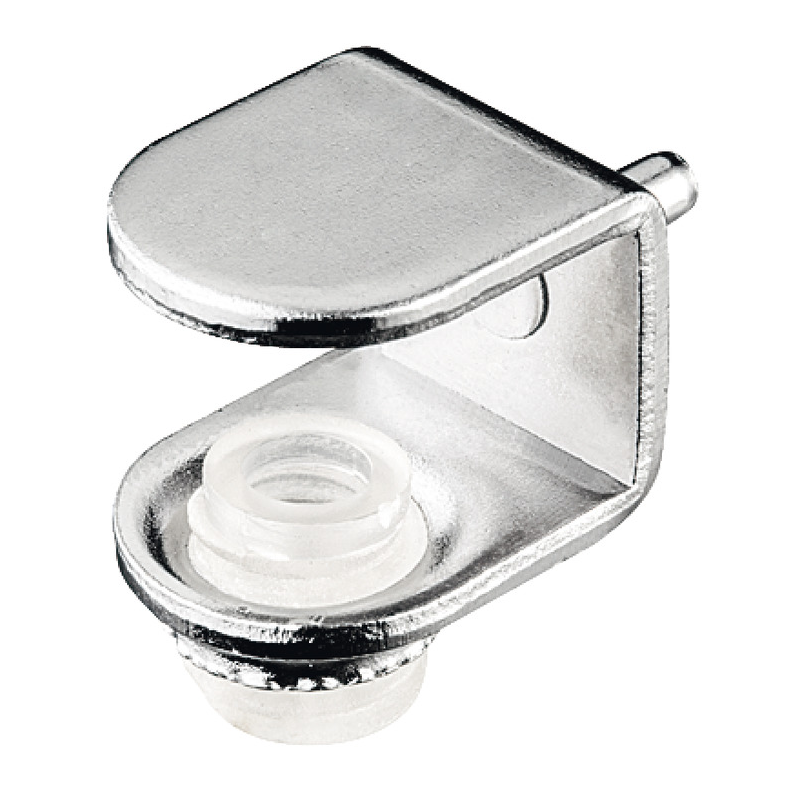 Soporte cristal niquelado embutido para espesores 6-10mm. Acero niquelado con tornillo retención transparente. Taladro 3mm, montaje a presión. Ideal vitrinas, expositores, mobiliario diseño. Modelo atornillar ref. 282.20.700.