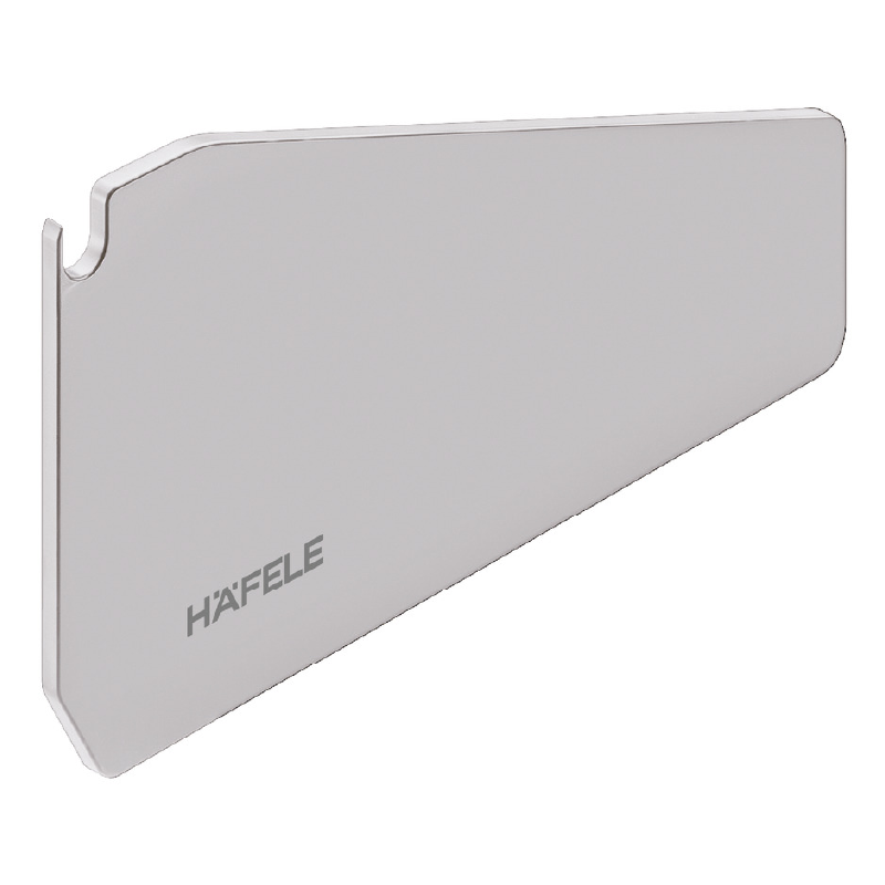 Tapa embellecedora gris para sistema de puertas elevables Häfele Free Up. Plástico resistente, fácil instalación. Proporciona acabado estético profesional ocultando mecanismos del herraje. Complemento esencial para mobiliario de calidad.