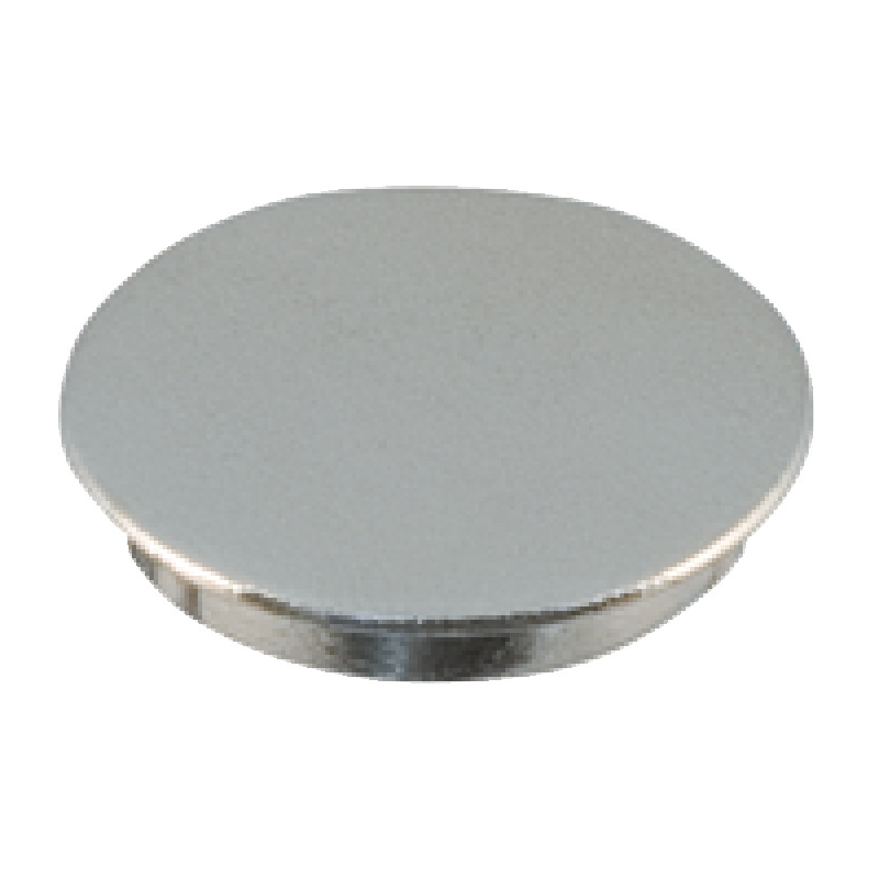 Tapa embellecedora fundición zinc niquelado D.21mm para colgador armario oculto. Acabado brillante profesional, atornillado manual. Oculta completamente el mecanismo. Ideal armarios cocina alta gama y mobiliario diseño.