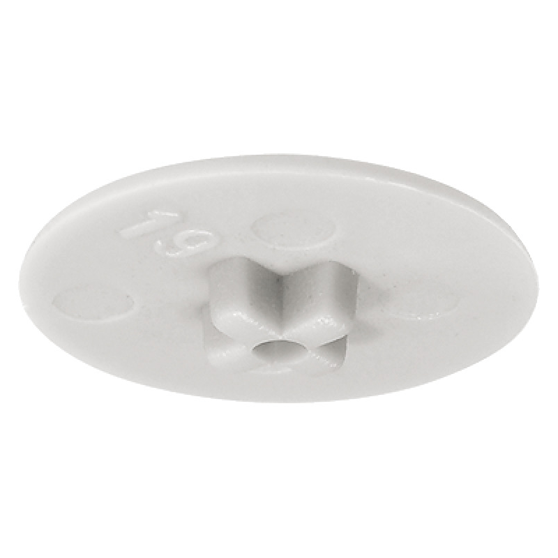 Tapa embellecedora Minifix® gris claro RAL 7035 para paneles 12-13mm. Plástico, diámetro 17mm, perfil 1mm. Accionamiento PZ2/punta plana. Compatible Minifix® 15 sin reborde. Acabado neutro para mobiliario industrial y contemporáneo.