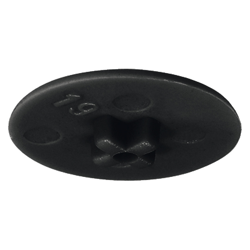Tapa embellecedora Minifix® negra RAL 9005 para paneles 12-13mm. Plástico, diámetro 17mm, perfil 1mm. Accionamiento PZ2/punta plana. Compatible Minifix® 15 sin reborde. Acabado discreto para mobiliario contemporáneo y minimalista.
