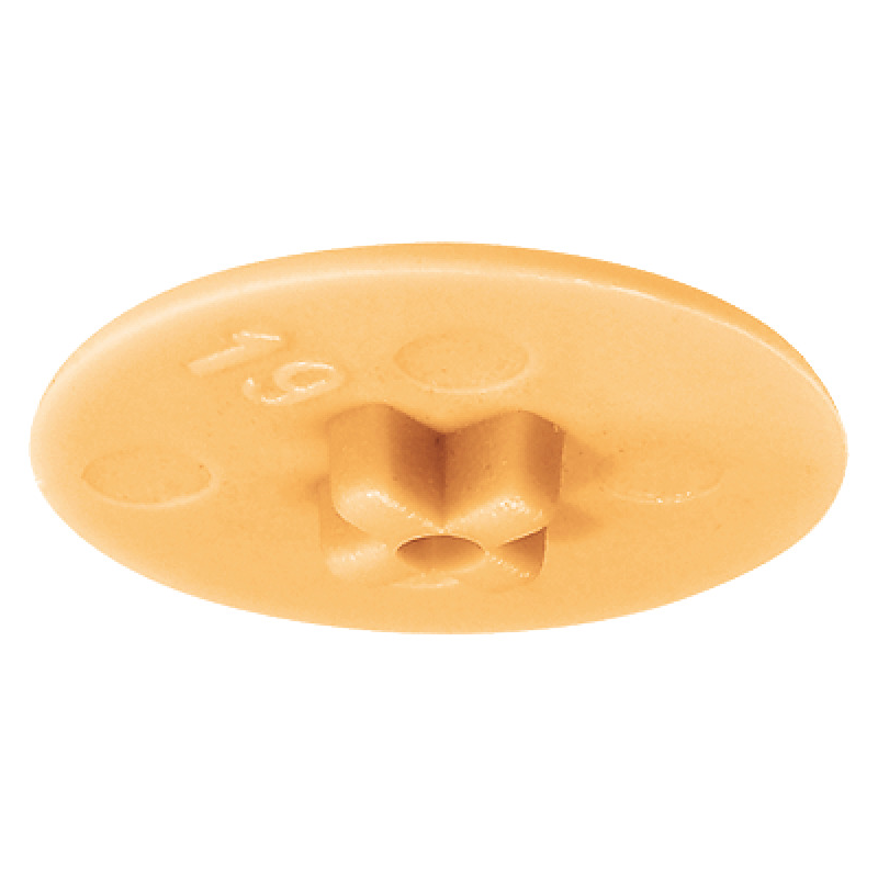 Tapa embellecedora Minifix® color pino. Plástico, para Minifix® 15 sin reborde en madera 12-13mm. Diámetro 17mm, perfil bajo 1mm. Accionamiento PZ2/punta plana. Acabado estético para muebles tono madera.