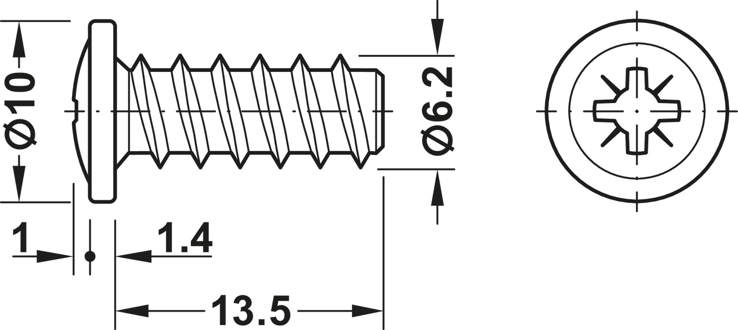 Tornillo cabeza plato 13.5mm para cajón Häfele Variante C. Acero galvanizado, rosca completa 6.2mm, taladro 5mm. Especializado montaje sistemas cajón, protección materiales finos. Orga-Box organización profesional.