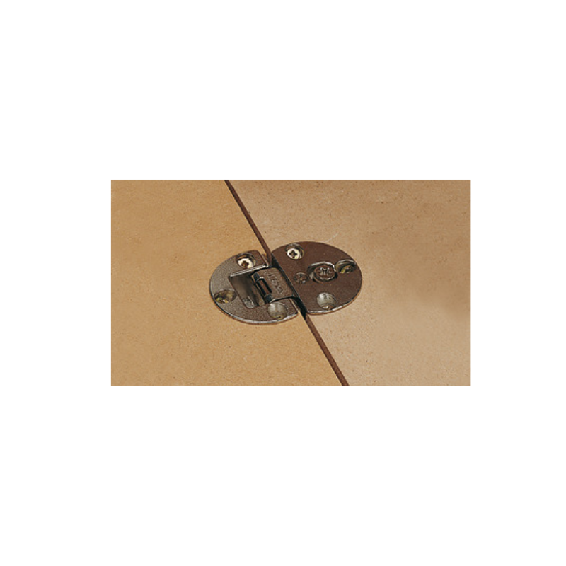 La bisagra de solapa 90° está diseñada para puertas de madera, ofreciendo un sistema de apertura eficiente y un ajuste tridimensional que permite una alineación precisa.