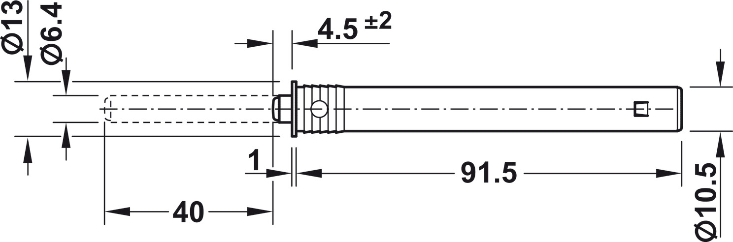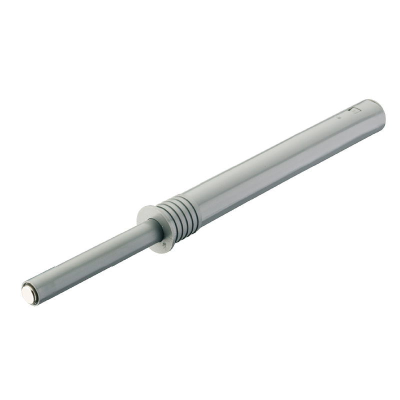 Vaivén presión embutible con imán 40mm para puertas sin tirador. Taladro 10,5mm profundidad 91,5mm. Recorrido 2mm, fuerza retención 6N. Regulación profundidad ±2mm. Seguro infantil anti-desenrosque. Contraplaca aparte.