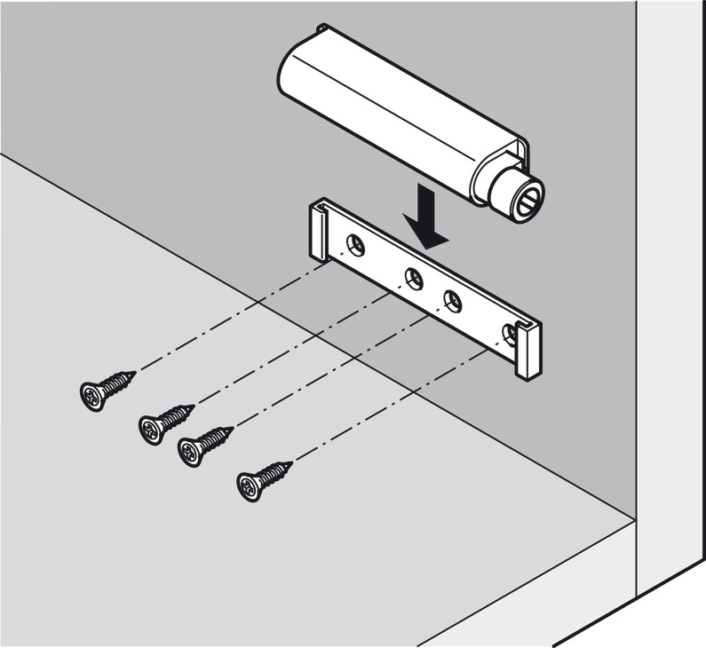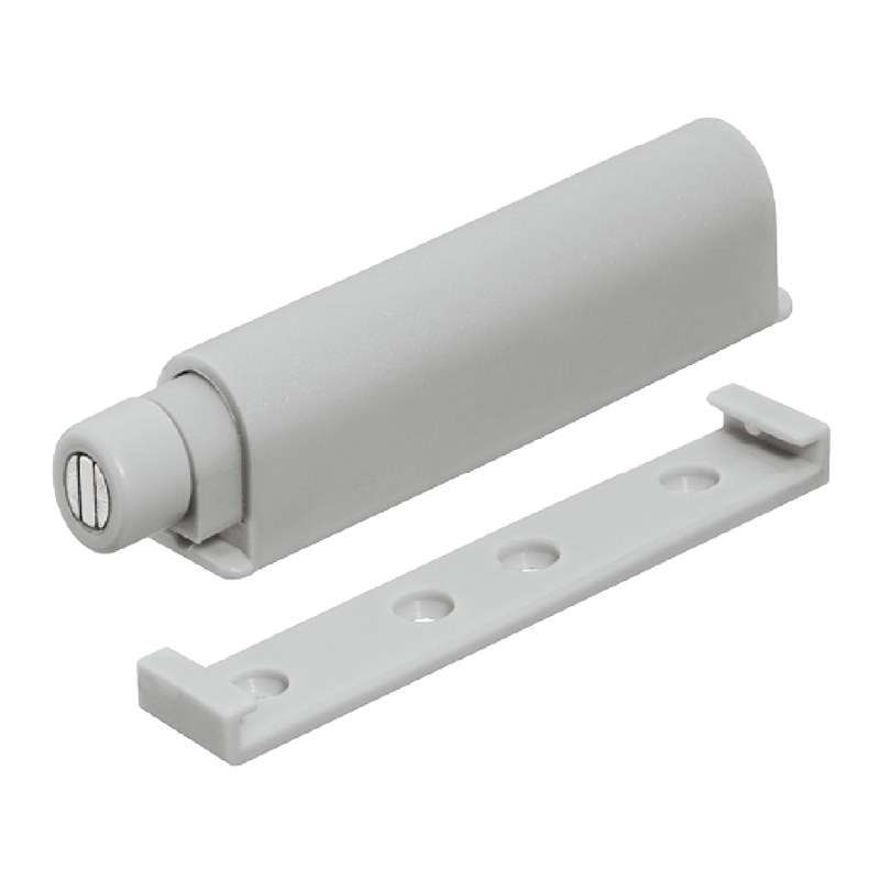 Vaivén presión magnético Duomatic gris claro para puertas sin tirador. Apertura asistida + retención magnética. Regulación profundidad <5mm. Para madera, cristal, metal. Incluye placa adaptadora (contraplaca aparte). Diseño minimalista.